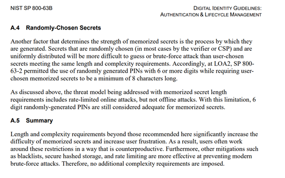 Nová doporučení NIST z roku 2017 obsahují oproti předešlým letům řadu změn. Co se týče hesel, reagují právě na výsledky výzkumů a pozorování. V závěru sekce o heslech proto autoři zdůrazňují: „Požadavky na délku a komplexnost hesla výrazně zvyšují obtížnost jeho zapamatování a s tou roste i frustrace uživatelů. Ti se pak snaží tyto požadavky různé obcházet, což je kontraproduktivní.“