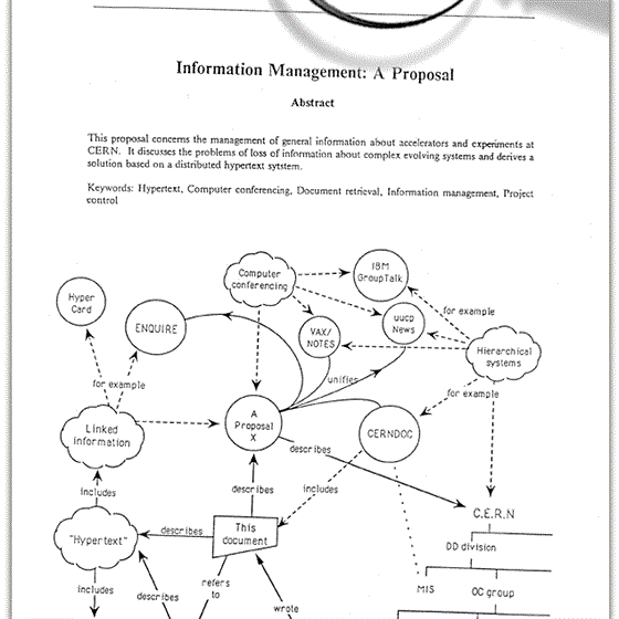 Sám Berners-Lee pracoval na návrhu systému umožňující hypertextové propojování informací větší část 80. let. V březnu 1989 vytvořil koncept, který je dnes považován za přelomový. Poslal kolegům oběžník. Nikdo nereagoval. Zeptal se tedy kolegy, co má udělat pro to, aby získal nějakou odezvu. "Mohl bys poslat oběžník," navrhl tehdy dotyčný. "Jestli jsem někdy dostal znamení, že opravdu potřebujeme nový systém komunikace, pak to bylo právě v ten moment," vzpomíná Tim Berners-Lee.