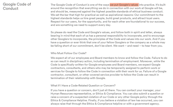 Nová verze kodexu Google (Google Code of Conduct) nevybočuje ze standardních mantinelů podobných textů. Ale každý, kdo firmu Google sleduje delší dobu, si ale na první pohled všimne, že je něco jinak.