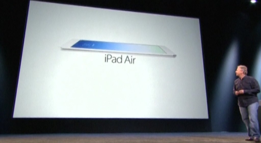 iPad Air - nejlehčí tablet na trhu s Retina displejem s úhlopříčkou 9,7 palců, čipem A7. V prodeji ve verzi s 16 GB paměti za 499 dolarů.