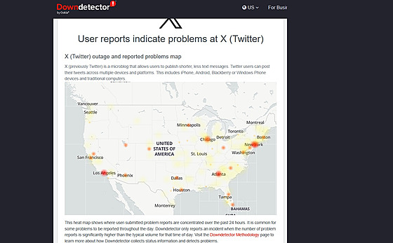 Po třetí hodině odpoledne v úterý 13. ledna začali masivně hlásit uživatelé sociální sítě x.com problémy s dostupností. Problém podle serveru DownDetector, kam lidé hlásí servery, které nefungují, trval výpadek necelou hodinu.