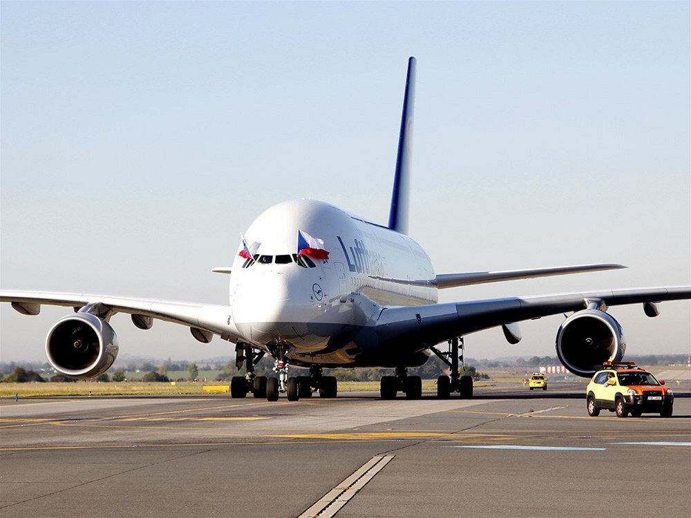 První přistání A380 v Praze. Lufthansa poslala největší letadlo světa na propagační let do Prahy v říjnu 2011 při příležitosti pětačtyřicátého výročí pravidelných letů na pražské letiště. Airbus A380 registrace D-AIMF, pojmenovaný Zürich, byl vyroben v roce 2010 a Lufthansa ho převzala letos na jaře roku 2011.
