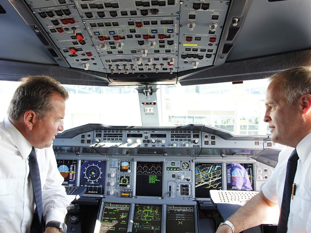 Pohled do kokpitu A380