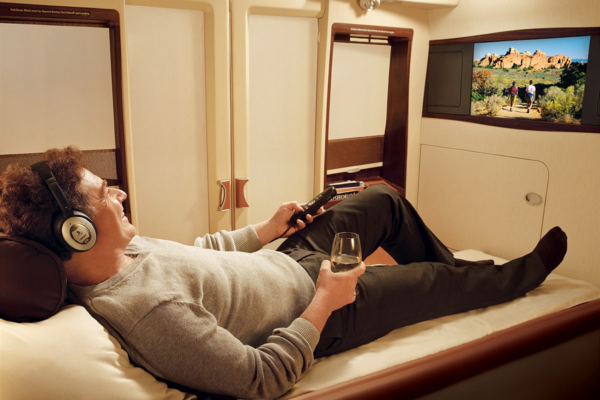 Pro byznys má letadlo vlastní bar a suity první třídy jsou u některých aerolinek extrémně luxusní. K dispozici je i sprcha. Tomu samozřejmě odpovídají i ceny letenek.