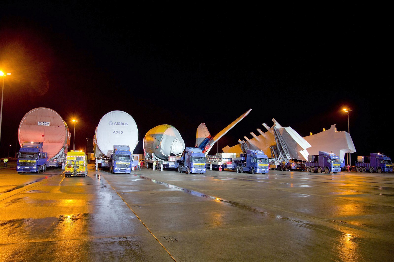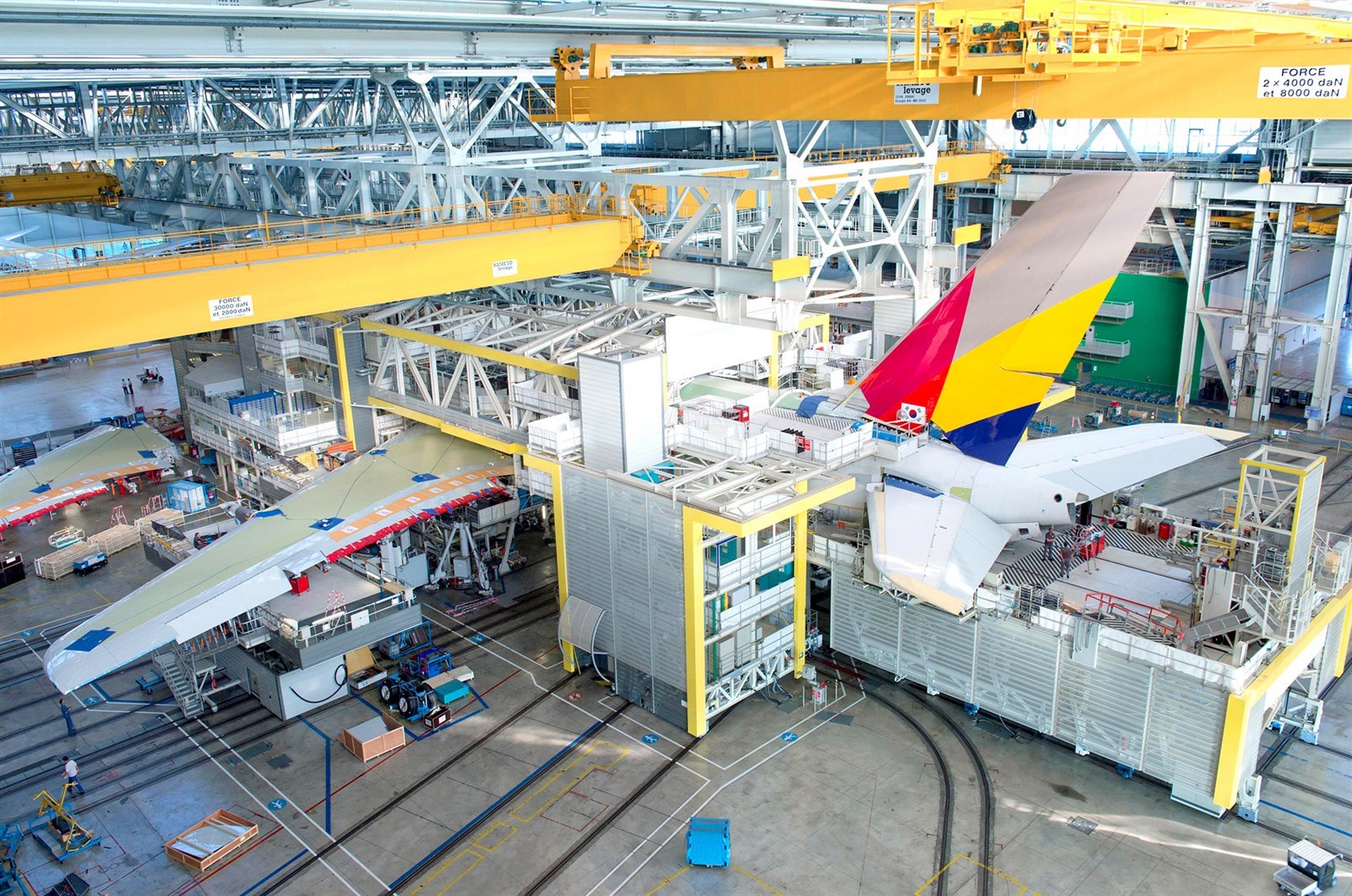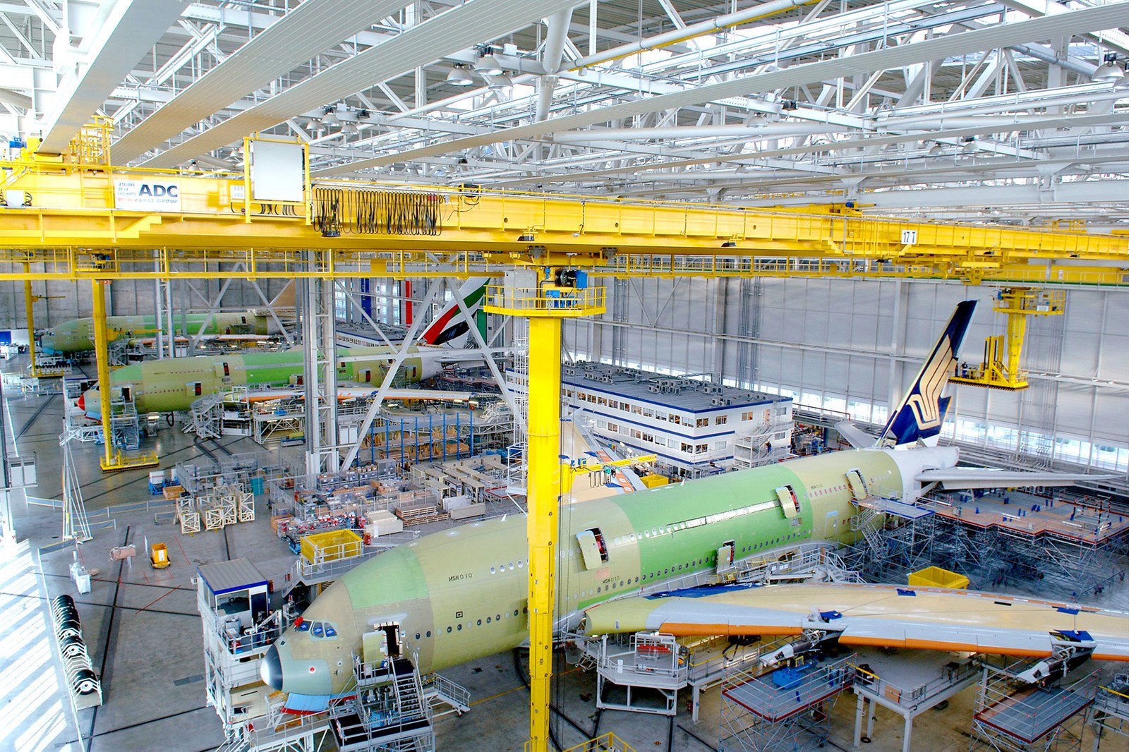 Jednotlivé části dopravního letadla Airbus A380 se vyráběly po celém světě. K finálnímu sestavení se svážely na montážní linku (takzvanou FLA) u francouzského Toulouse.