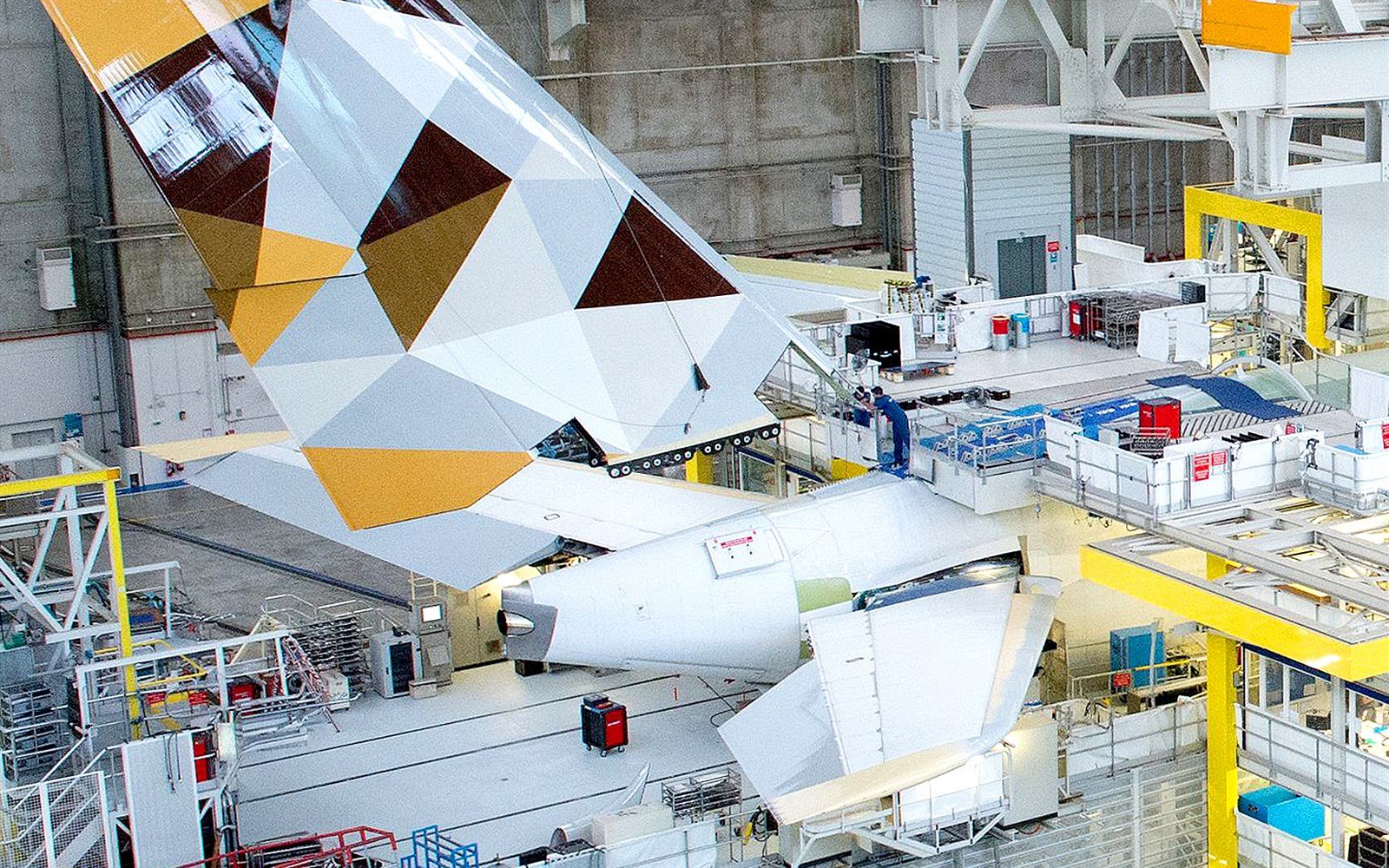 Smontování jednotlivých částí dopravního letadla A380 v závodě Airbus nedaleko francouzského Toulouse