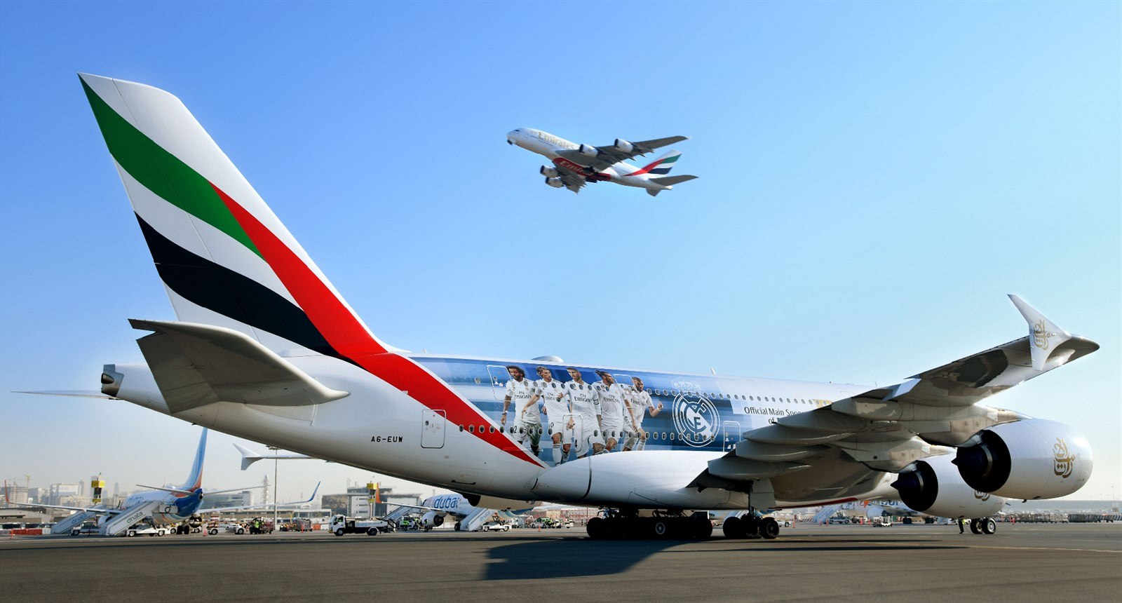 Airbusu A380 společnosti Emirates v barvách Realu Madrid