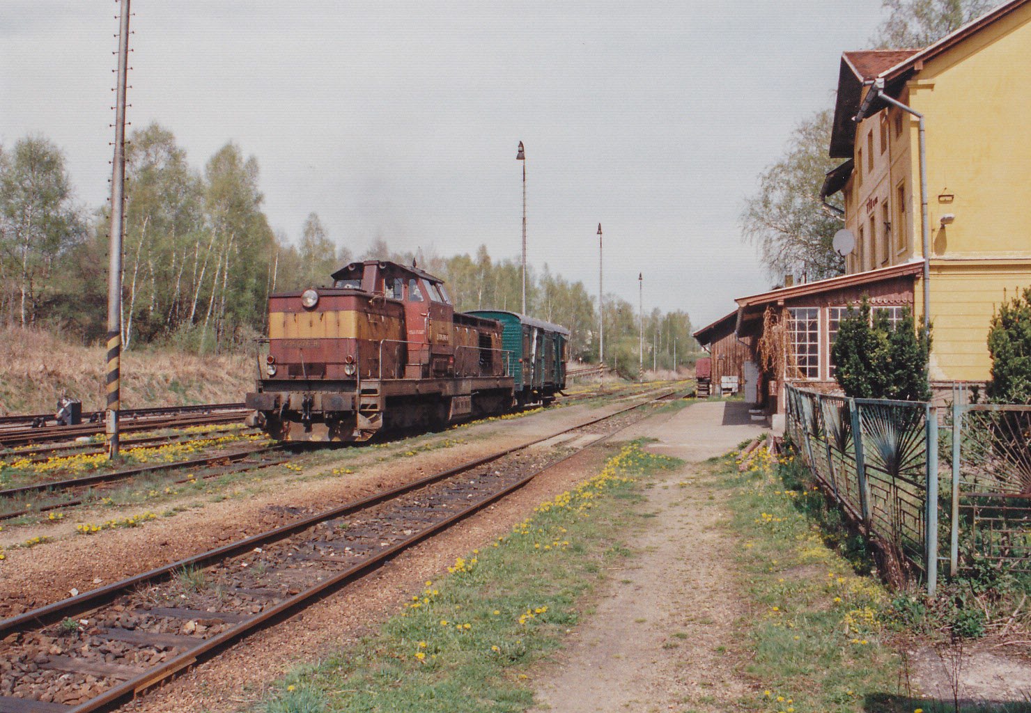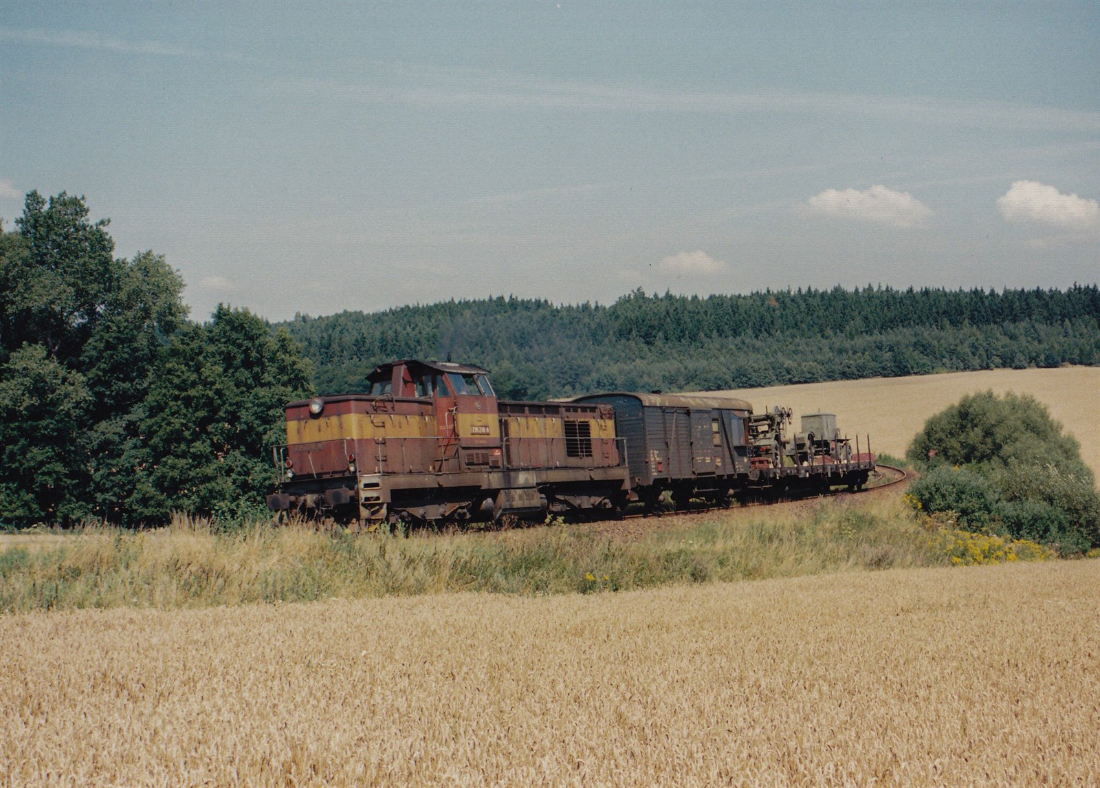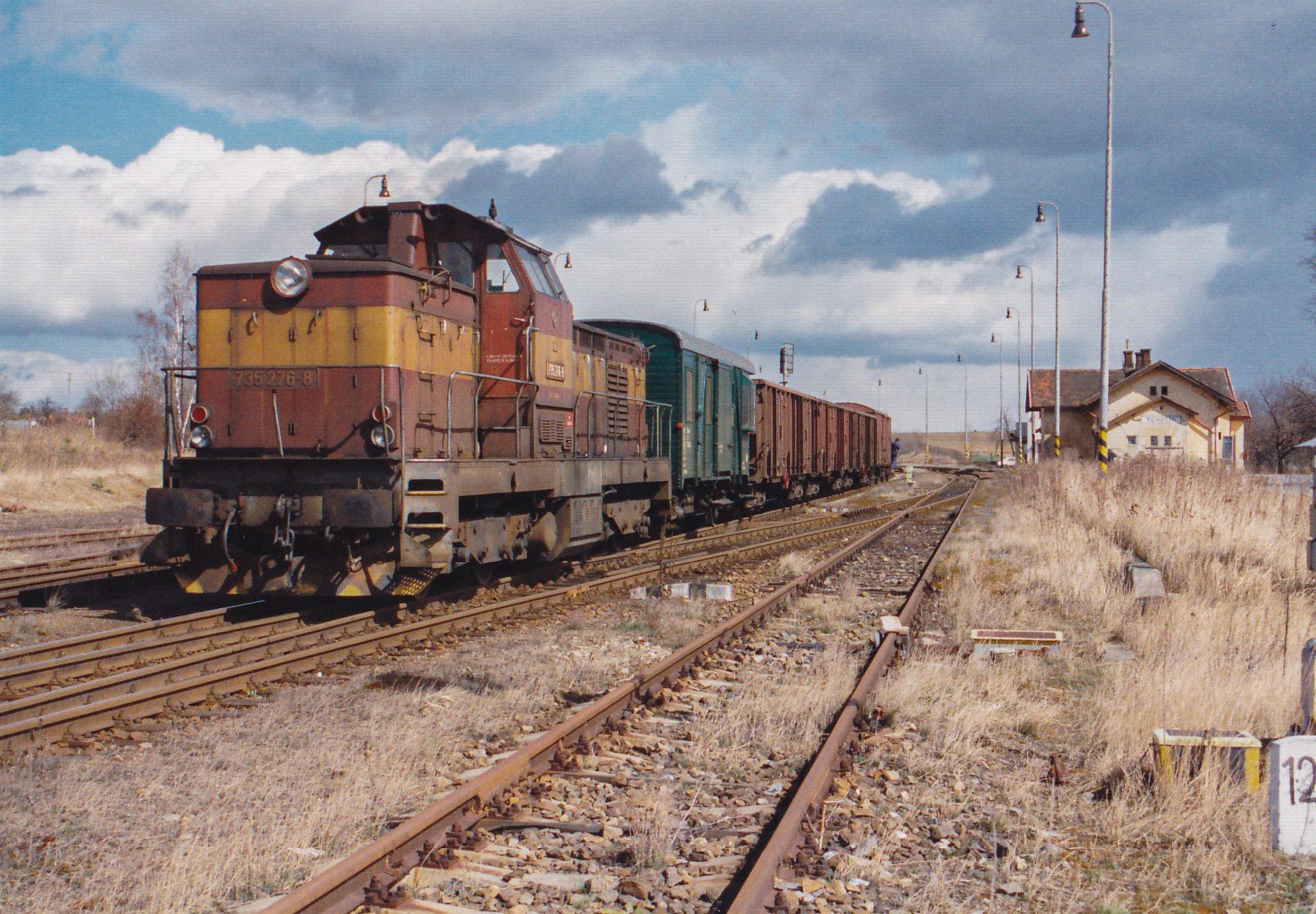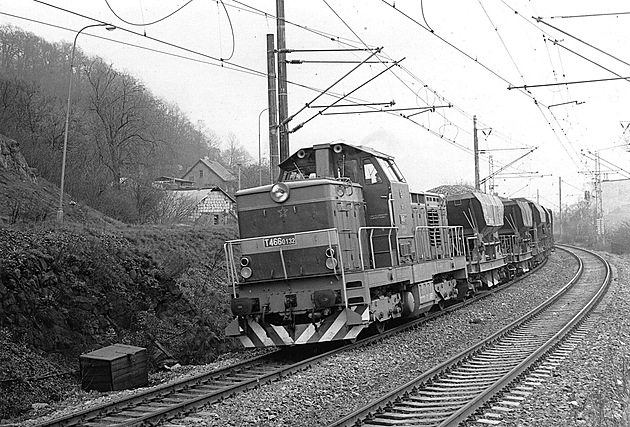 Kvůli licenčním poplatkům má řada T466.0 na svém kontě jeden zajímavý primát. Byla nejdražším typem motorové lokomotivy v historii Československých státních drah. (foto: Pilštyk v čele manipulačního vlaku ve stanici Temelín)