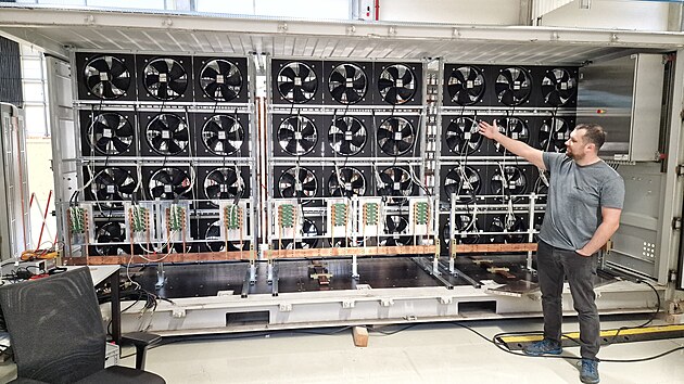 Testovací sestava bude mít 1MW motor a adekvátně dimenzované komponenty. I proto je teď v brněnské hale speciální „mařič“ energie, který se do systému připojí místo motoru.