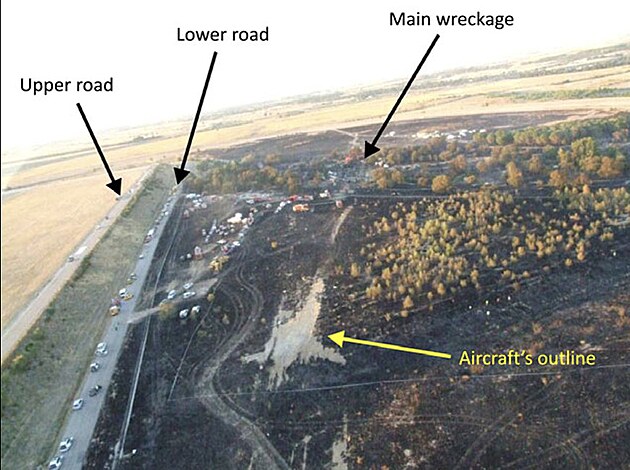 Další náraz utrhl ocasní část a způsobil zhroucení pilotní kabiny dovnitř letounu. Drhnutí po zemi také zapříčinilo únik a vznícení víc než deseti tisíc litrů paliva z čerstvě doplněných nádrží. Trup letounu, nyní už zcela pohlcený plameny, se zastavil až nárazem do koryta potoka.