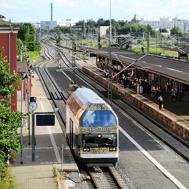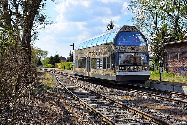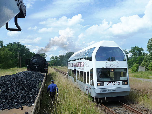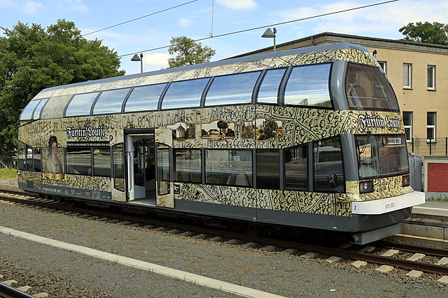 Lehký patrový motorový vůz původní řady DB 670. Na této fotografii a dvou následujících, stejně jako na jedné z již prohlédnutých, vidíme vůz pojmenovaný Kníže Franz.