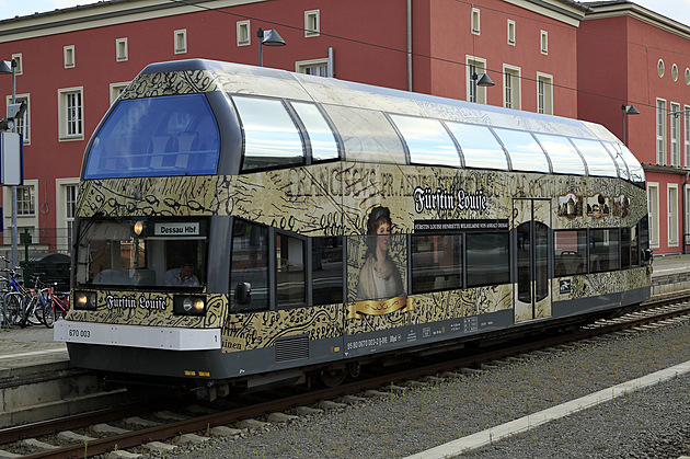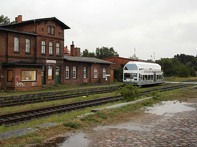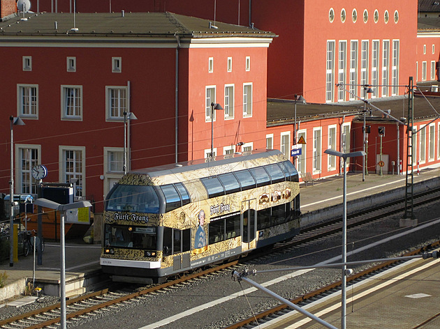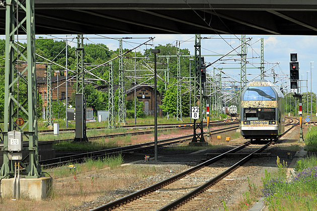 Patrový motorový vůz na hlavním nádraží Dessau (Dessau Hauptbahnhof) ve dvojměstí Dessau-Roßlau