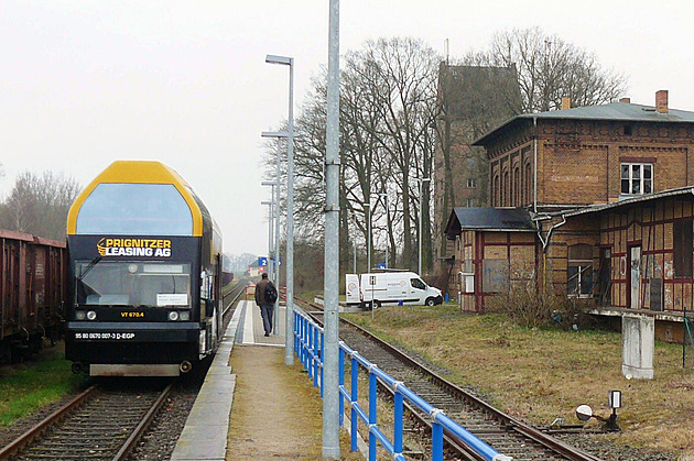 Také železniční stanice Meyenburg se může pochlubit historickou vodárenskou věží mohutné stavby s několika obytnými podlažími pod vodní nádrží. Věž se nám skrývá vzadu ve vegetaci, kdy ji díky absenci listů v zimním období nelze přehlédnout.