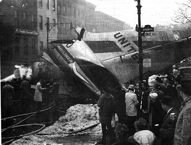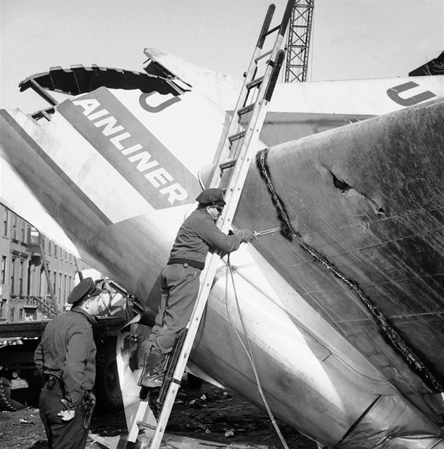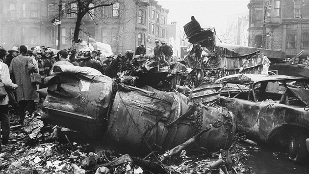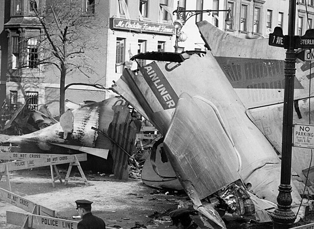Náraz zároveň odtrhl motor a část křídla proudového stroje, ten se ještě další minutu a půl dokázal udržet ve vzduchu, zachránit se ho však již nepodařilo. Letoun DC-8 aerolinek United se zřítil do hustě osídlené oblasti čtvrti Park Slope v Brooklynu na křižovatku Sedmé avenue a Sterling Place.