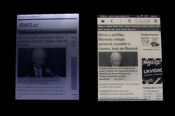 Pokud jste zvyklí na hardwarová tlačítka, bude vám chvíli trvat, než si zvyknete klepat prstem na displej. Ale je to jednoduché a displej je na omak mnohem příjemnější než lesklé Gorilla Glass na tabletech. Na předchozí stránku se dostanete buď klepnutím na levé straně, nebo krátkým svižným přetažením prstu zleva doprava.
