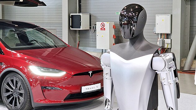 Maketu robota si můžete prohlédnout ve stánku Tesla na veletrhu e-Salon.
