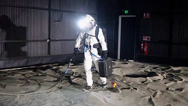 Na simulovaném měsíčním povrchu testují vědci technologii, která by mohla výrazně usnadnit budoucí mise na Měsíc i Mars. Pod skafandrem zde astronauti zkoušejí speciální robotické „exosuit“ kalhoty.