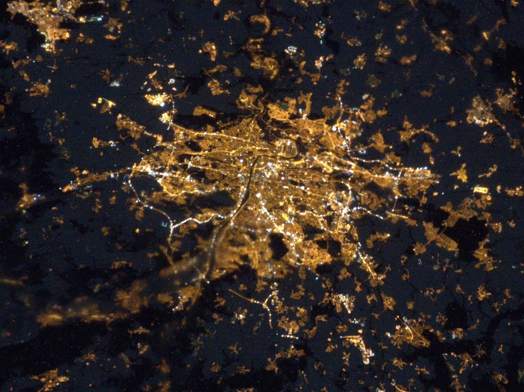 Snímek noční Prahy z ISS z konce ledna 2013, jak ho pořídil Kevin Ford.