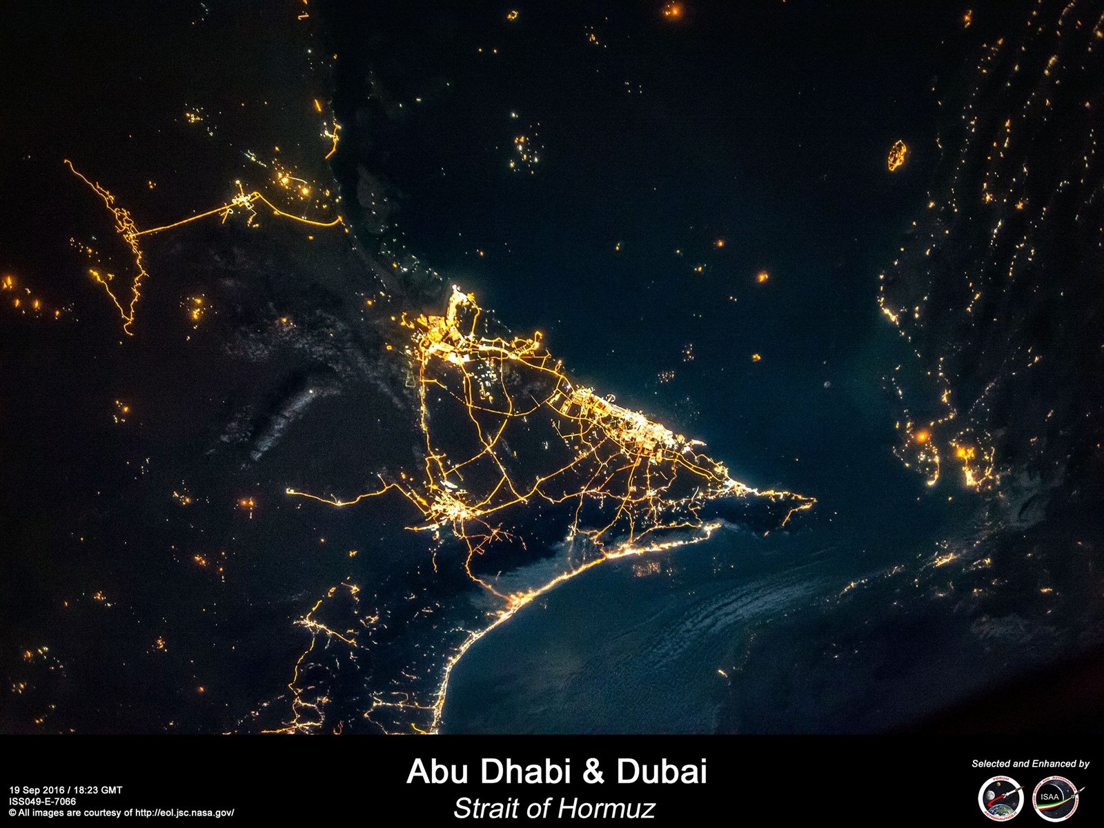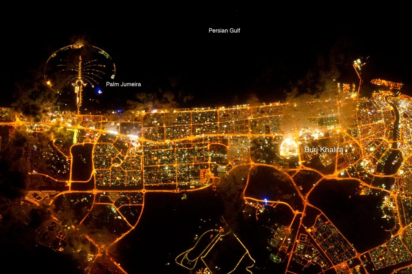 Dubaj je pro svoje tak trochu sci-fi vzezření a fotogeničnost oblíbeným objektem fotografií z vesmíru.