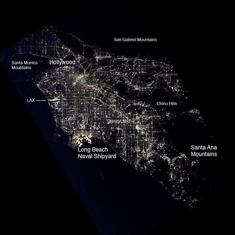 Na snímku pořízeném 10. března 2003 v jednu hodinu v noci vidíte Los Angelesv Kalifornii