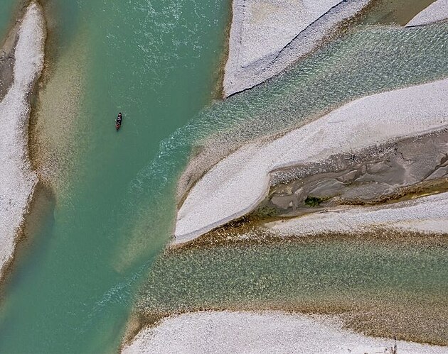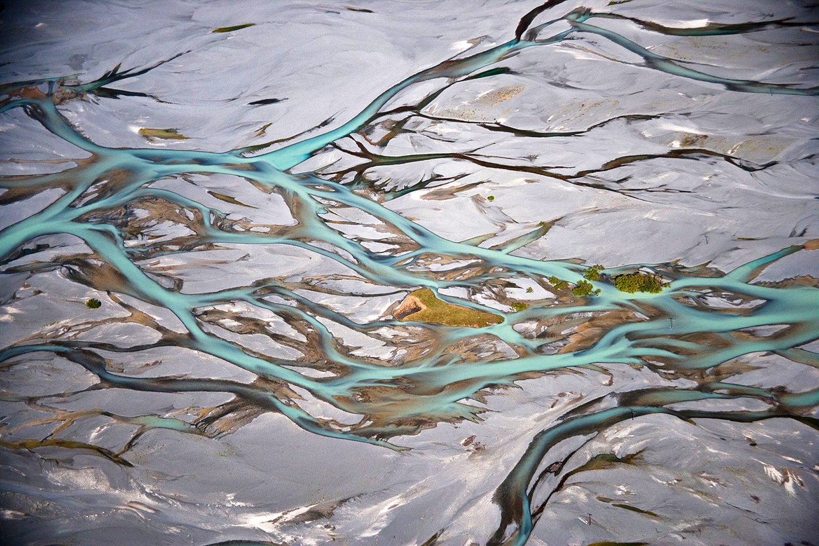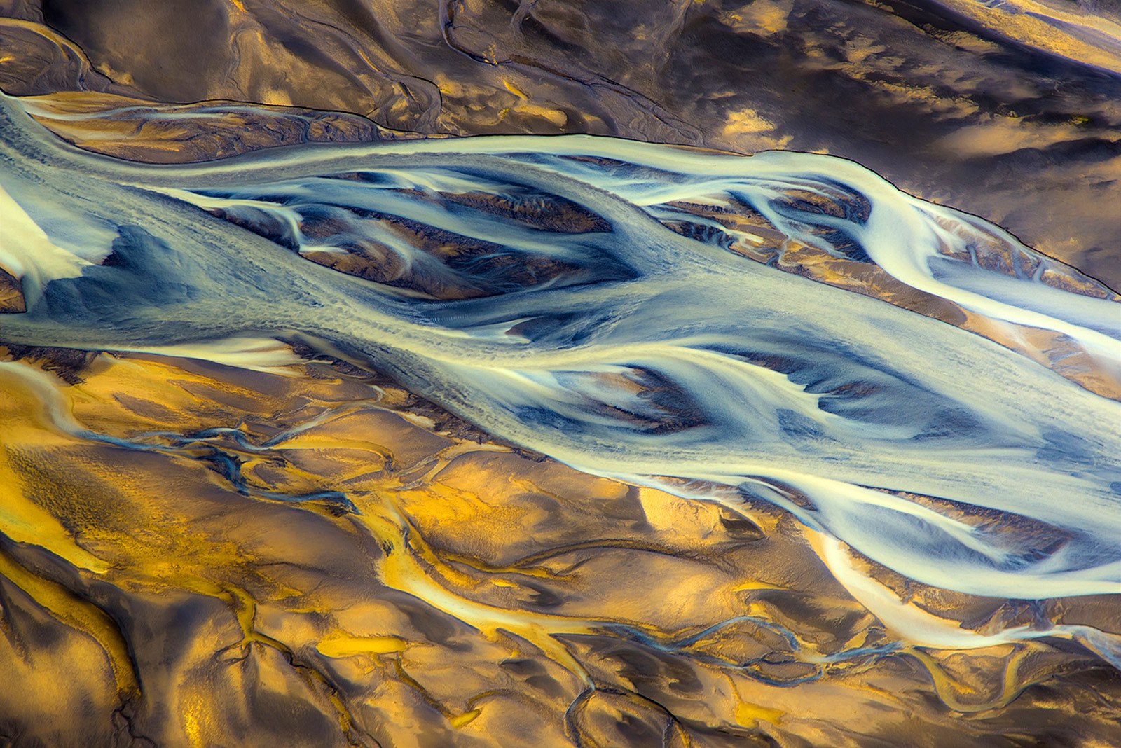 Z výšky vypadá jako nádherný akvarel, ale tento malovala sama příroda. Na snímku vidíte řeku Tungnaá na Islandu.