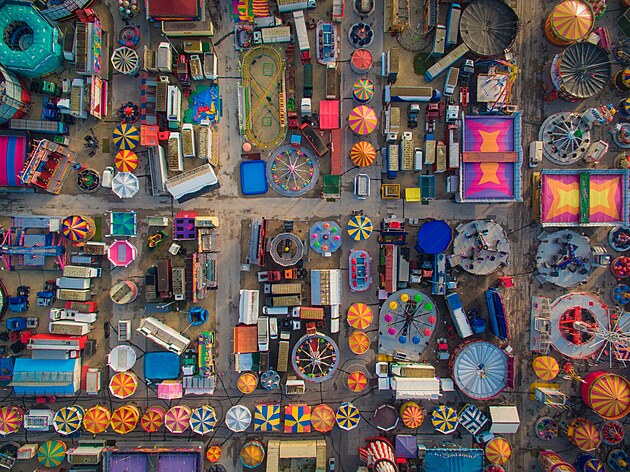 Veletrh Hull Fair v britském městě Hull je plný barev, což vynikne právě při pohledu z výšky.