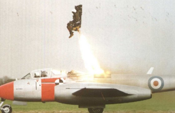 Zkoušky nového letounu se neobešly bez katastrof. Začátkem ledna 1944 byl zničen prototyp DG204, po roztržení kompresoru levého motoru. Letoun dopadl do pole a pilot S.L. Davie zahynul. Podařilo se mu sice z letounu vyskočit (neměl vystřelovací sedačku), ale byl zasažen padajícím strojem. Na prototypu DG205 si v rámci spojeneckých výměn zalétali i dva Američané (jeden z nich byl Frank Kelley od firmy Bell, která v USA stavěla proudový (X)P-59 Airacomet).