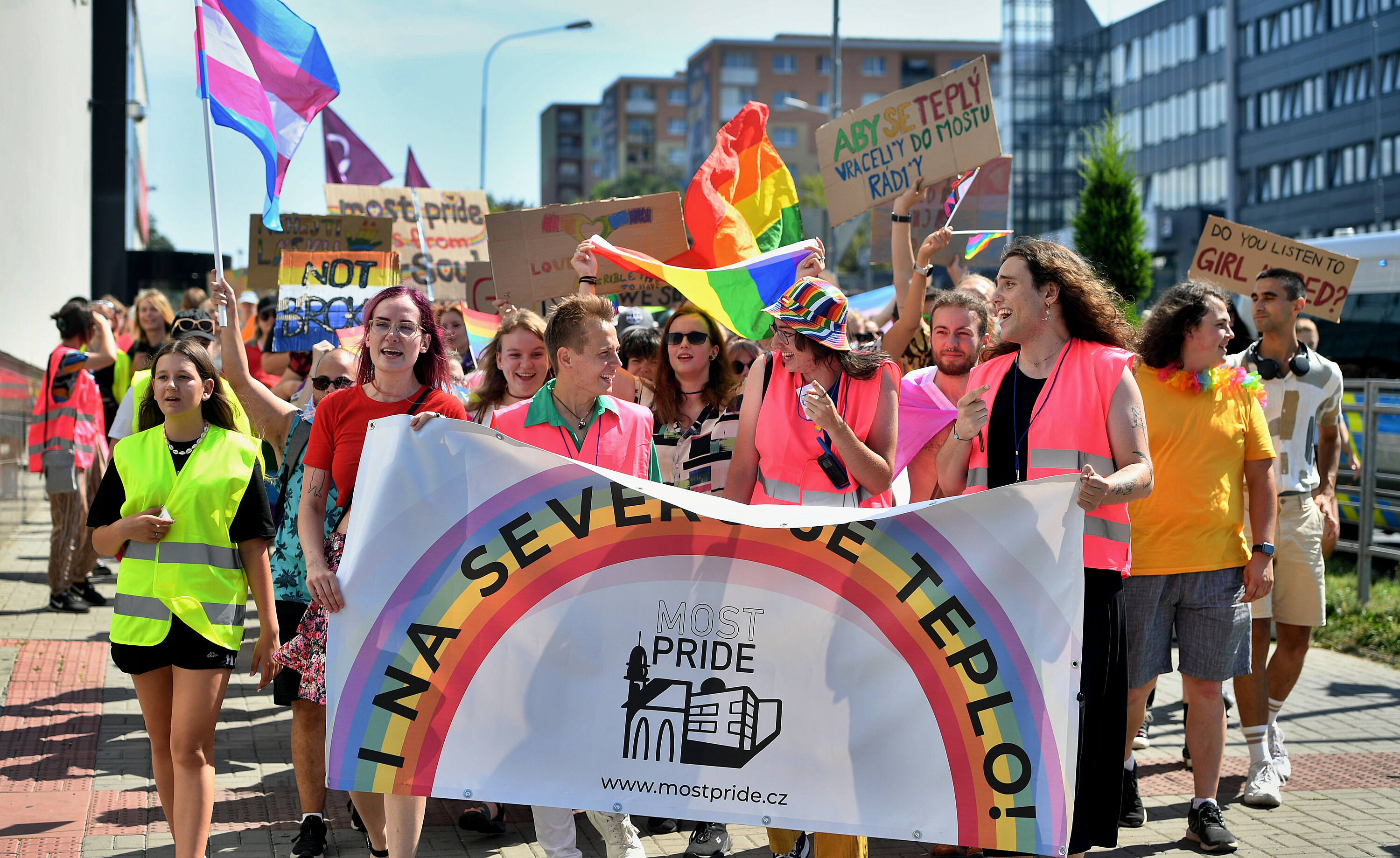 Průvod tvořili jak místní, tak i podporovatelé z celé republiky. „Přijeli jsme sem vyjádřit podporu mosteckému Pridu, protože je to skvělá aktivita. Jsme rádi, že se takovéto akce konají i v regionech, kde to má veliký lokální dopad,“ sdělil Filip z Opočna.