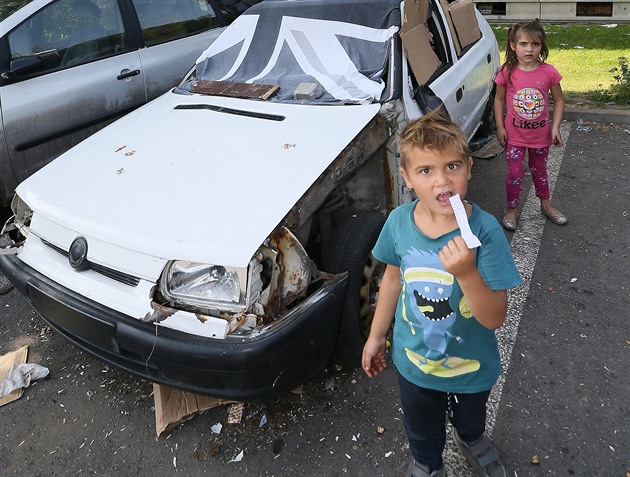 „Co tady děláš ty mr..o s tím foťákem,“ řve z okna jeden Rom na kolegyni v Mojžíři, středně velkém ústeckém sídlišti, které spadá pod čtvrť Neštěmice a zdejší obvodní radnici. „Drž hubu a buď slušnej,“ napomíná ho z uličky mezi panelovými domy zhruba padesátiletá žena. „Tady jsou lidi takový, uklízím každý den, ale bordel je pořád,“ říká paní, která se posléze představí jako Božena. Uklízí sídliště při veřejně prospěšné práci. Za ní zůstává chodník zametený, před ní spousta odpadků, na keři visí dětská plenka, chodník plný použitých dámských vložek.