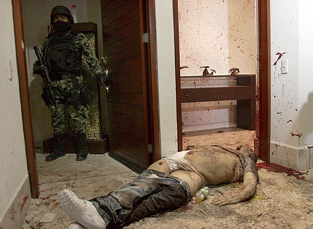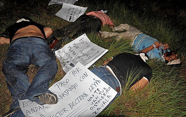 A ještě jedna fotka ze soupeření zločineckých firem. Muži v kuklách jsou žoldáci El Mencha. Tři zajatí polosvlečení jsou z Los Zetas, paramilitárního útvaru kartelu Sinaloa. Nečekal je laskavý osud. Teď už se však vydáme na procházku, kde nás čekají vůdci mexických kartelů.
