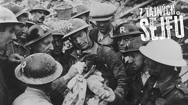 Záchranáři ARP s malým psem během bleskové války v roce 1940. „Díky němu se...
