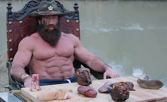 Na své instagramové produkci odtrhoval polonahý varlata z býčích mrtvol a rovnou je pojídal. V jiném videu nutil svého náctiletého synka vykuchat na louce umírajícího býka a sníst jeho pulzující orgány. Znovu – velmi macho. Jindy synka učil vyslovovat slovo „steak“ s procítěnější, pračlověčí, divošskou artikulací. Ještě jindy rozstřílel poloatomatickou zbraní balení veganských burgerů.