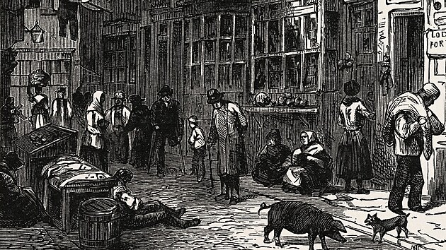 Lidi byli namačkaní všude, mnohé rodiny sdíleli jediný pokoj, bydlelo se v kuchyních, ve sklepech, na půdách, na ponurých dvorcích, na nárožích. Soukromí neexistovalo. Žumpy trčely otevřené, kanály často protékaly skrze obytné místnosti, vodovod nikde nebyl, ani popelnice, žilo se v bahnu a špíně. Personifikace rezervní proletářské armády. Nadbytečné populace.