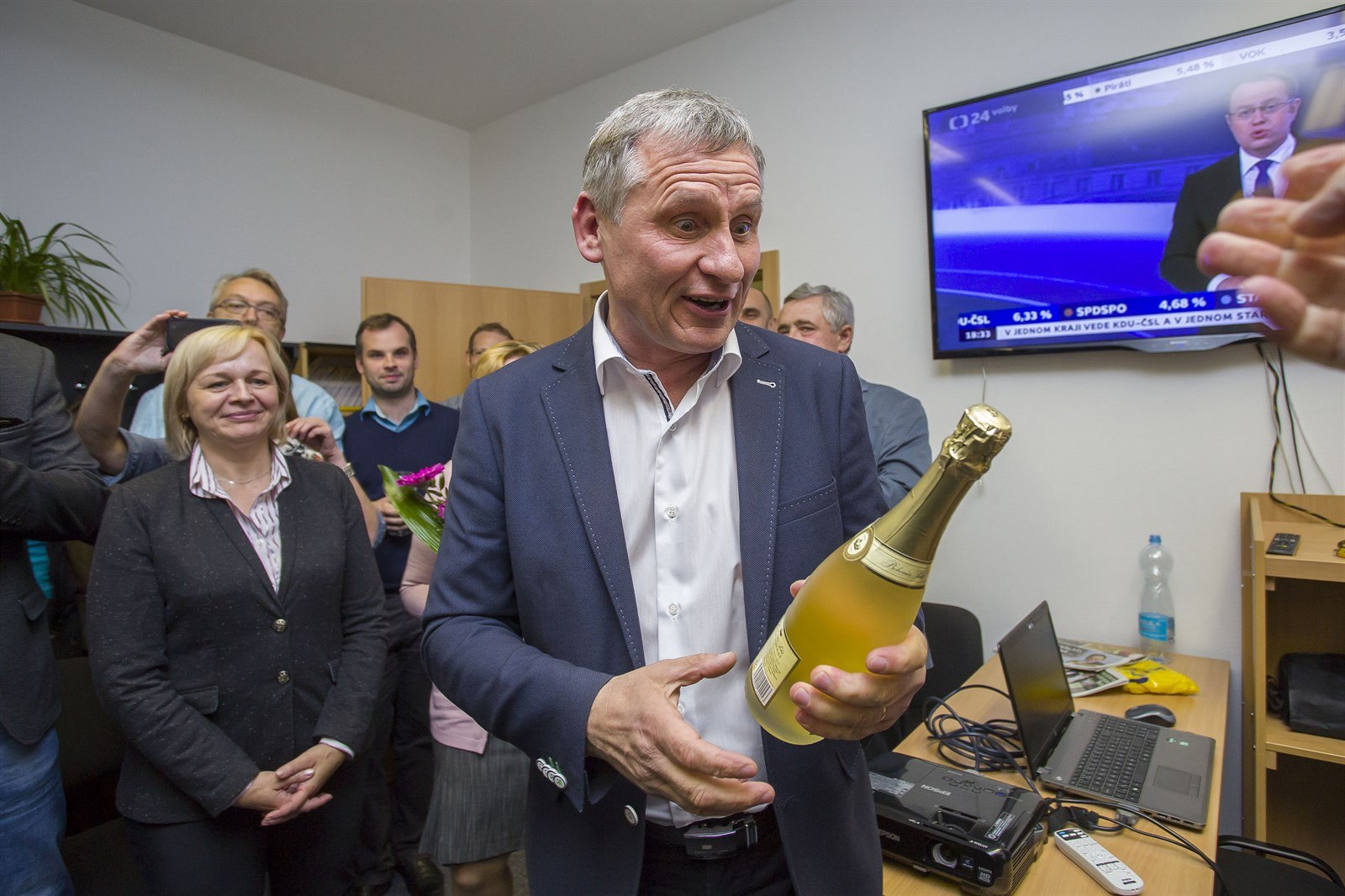 „Předpokládal jsem, že budeme bojovat o první místo, ale nečekal jsem, že vyhrajeme takovým rozdílem,“ prohlásil Čunek poté, co dorazil mezi slavící spolustraníky do krajského volebního štábu.