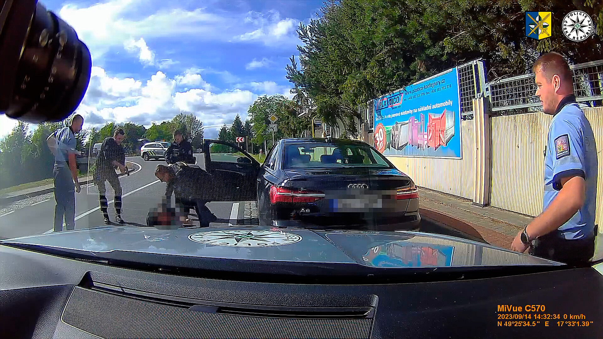Do pronásledování se zapojily i přerovské hlídky z Olomouckého kraje. Vozidlo se podařilo zastavit až zahrazením cesty policejním vozidlem v obci Domaželice.