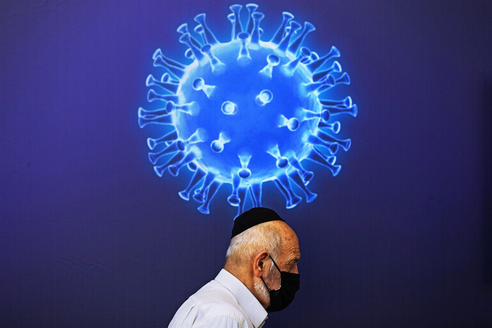 Muž v roušce čeká na očkování proti koronaviru v očkovacím středisku v Jeruzalémě. (4. ledna 2021)