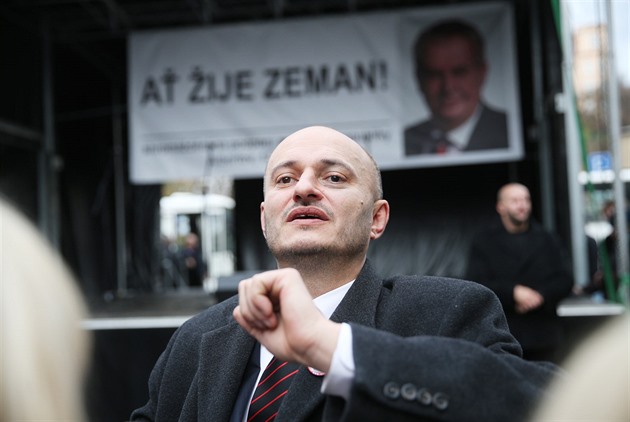 Záběry z projevu Miloše Zemana za účasti Martina Konvičky (17. 11. 2015):