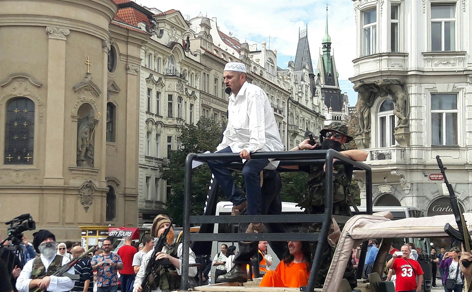 Akci na Staroměstském náměstí v Praze od 14 hodin pořádala Iniciativa Martina Konvičky, která chtěla sehrát okupaci hlavního města Islámským státem. Happening s názvem Okupanti obsazují Prahu povolili úředníci hlavního města. Policisté před zahájením akce účastníkům zkontrolovali rekvizity. „Zbraně nejevily žádné známky závad. Policisté nedošli k názoru, že by jejich držením mělo docházet k jakémukoliv protiprávnímu jednání,“ řekl Hulan.