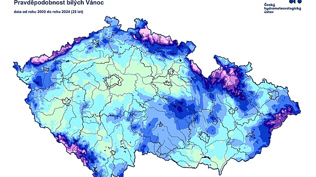 Na horách v místech nad 1 000 metrů nad mořem šance na bílé Vánoce překračuje 80 procent. Na hřebenech pohraničních hor, kde nejčastěji dochází k výskytu vydatných sněhových srážek, je i nad 90 procent.