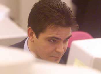 ![]() Ministr bez portfeje Karel Březina v redakci iDNES píše odpovědi na otázky čtenářů; je jedním z mála, kdo si nevyžádal pomoc písařky (31. března 2000) |