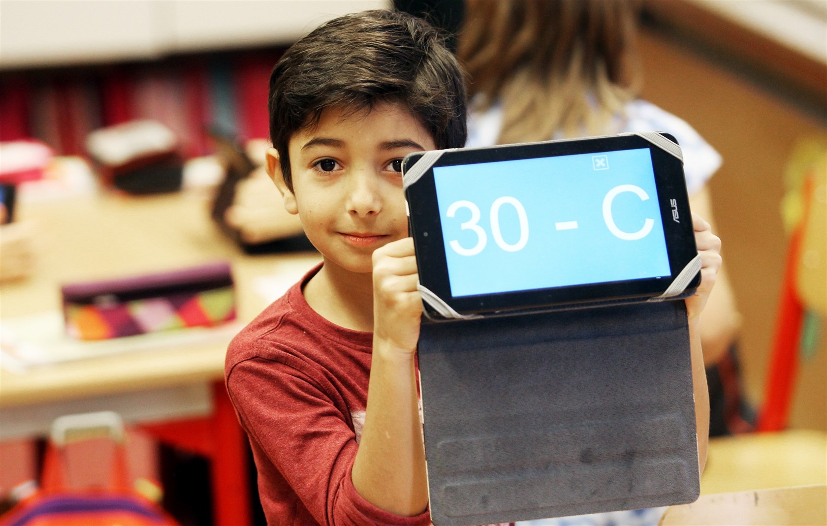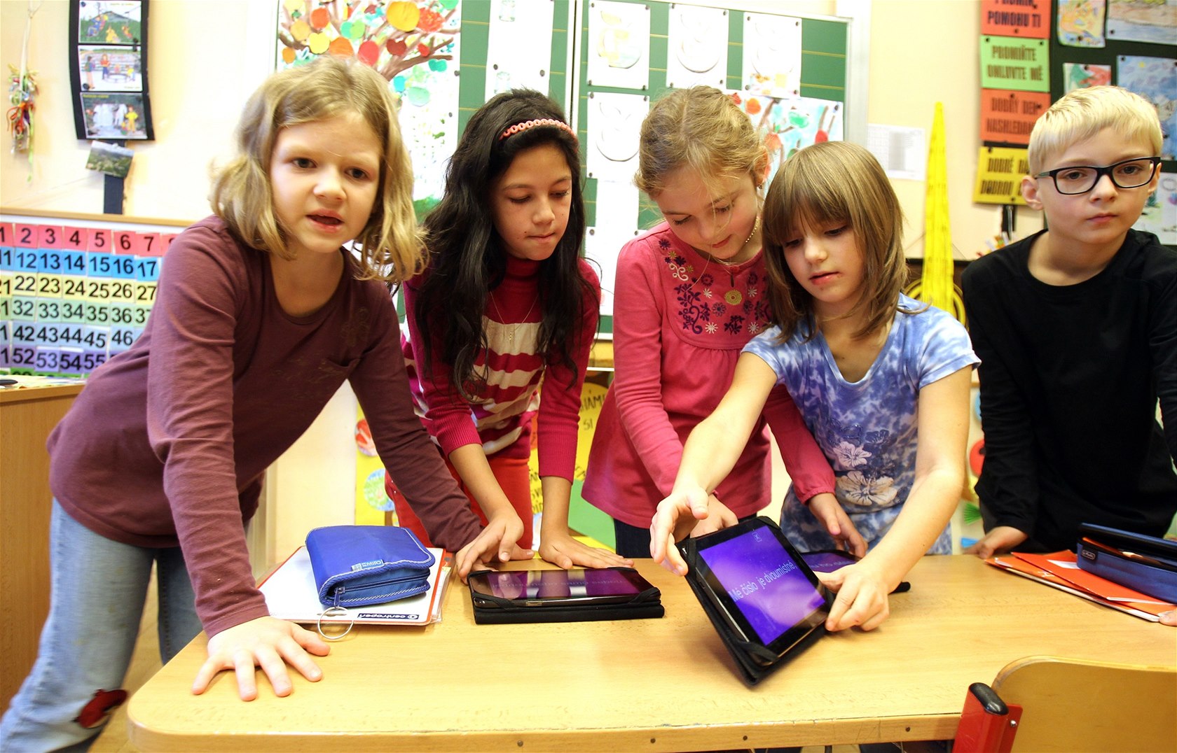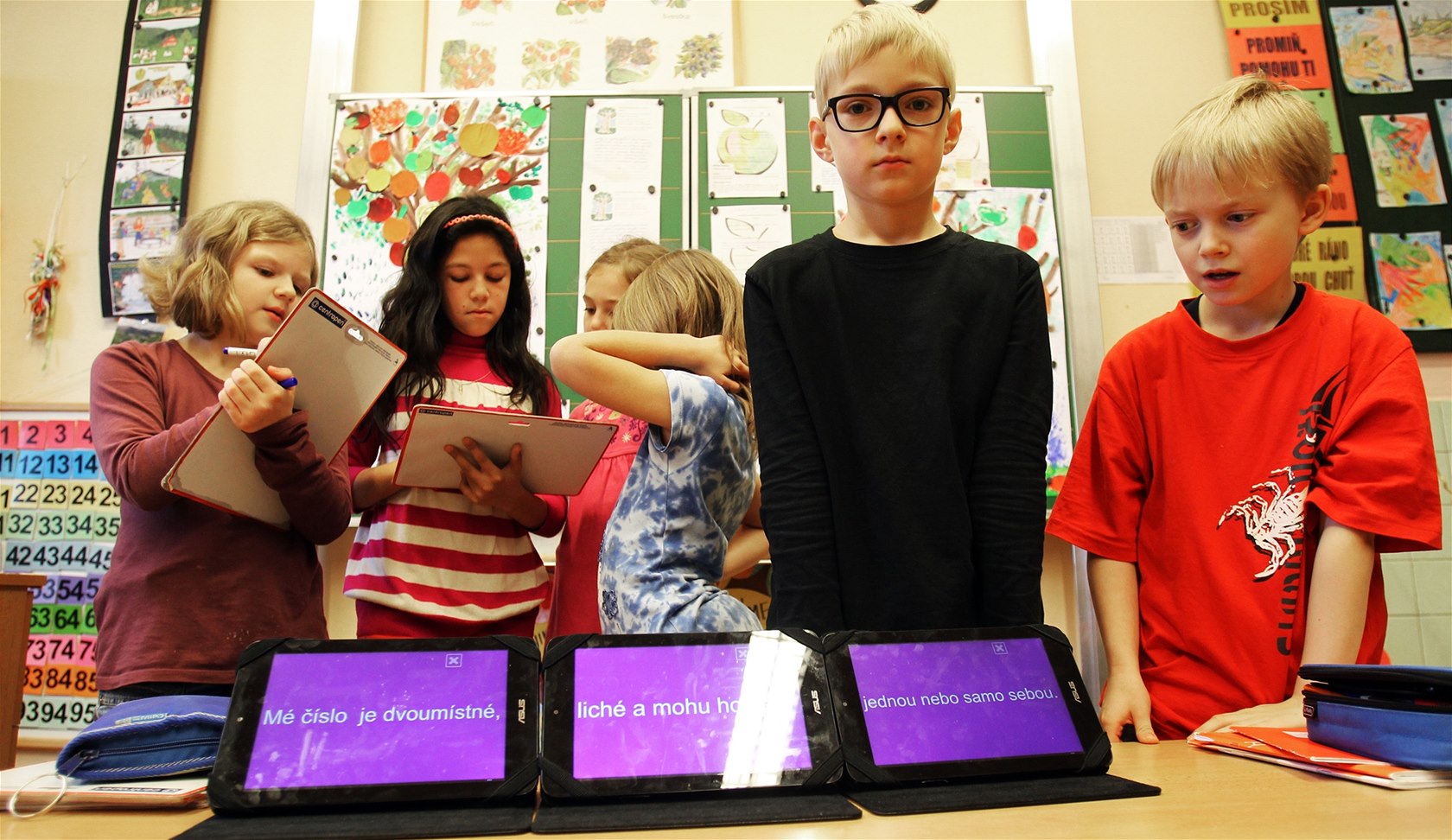 Třeťáci ve škole v Lysé nad Labem používají ve výuce tablety (13. 11. 2014).