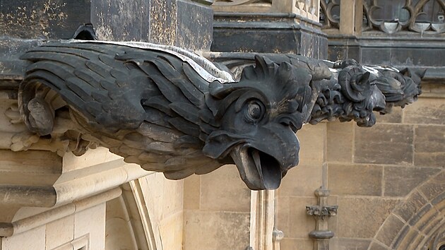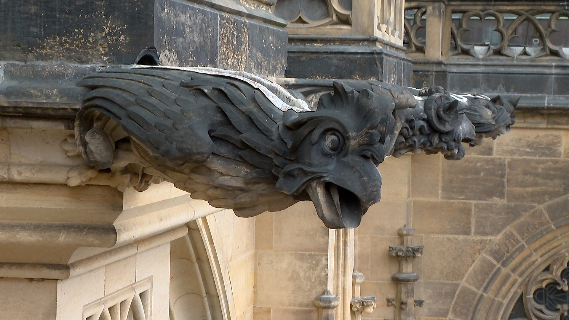Třeba jeden z těch přímo nad vchodem do katedrály má podobu dravce s hlavou krále ozdobenou korunou. Ten je ze všech nejmladší. Restaurátoři ho museli před dvěma lety vyměnit za přesnou repliku. Oproti německým katedrálám tu ale nejsou žádné výstřelky středověkých kameníků, žádná holá pozadí mnichů, vystrčená do světa.