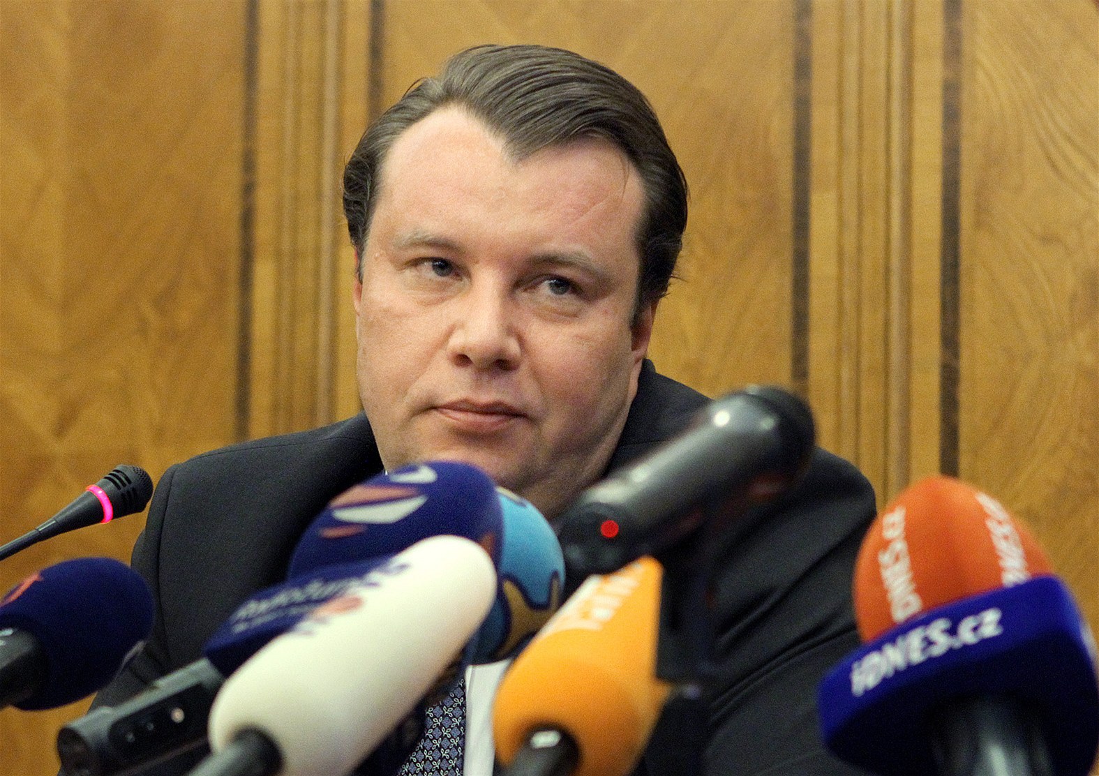 "Budu odpovídat raději v obráceném pořadí, abych nezapomněl, na co jste se ptal... no, vidíte, a teď jsem to zapomněl," uvedl hned u první odpovědi a zmateně očima lovil nápovědu u mluvčího ministerstva Pavla Vlčka, který seděl vedle něj.