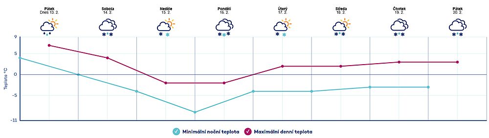 V sobotu se od severozápadu bude ochlazovat a v neděli už na většině území zůstanou denní teploty pod bodem mrazu. Ranní teploty v sobotu ještě kolem nuly, ale v neděli ráno už bude všude pod nulou.