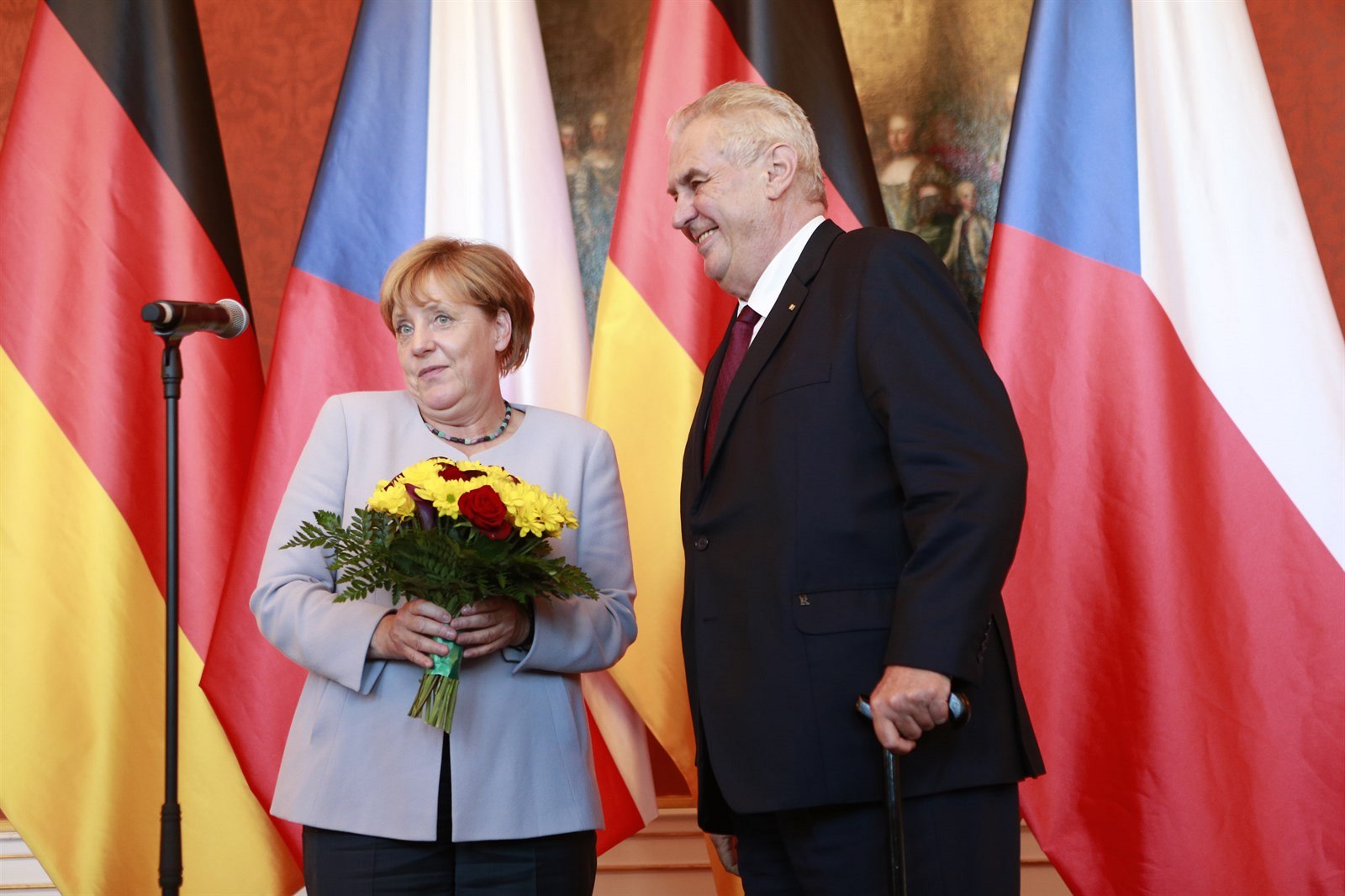 Prezident s Merkelovou mluvil nejprve mezi čtyřma očima, poté se k nim připojily delegace, přičemž v té české byl i vicepremiér a ministr financí Andrej Babiš z ANO a ministr zahraničí Lubomír Zaorálek z ČSSD.