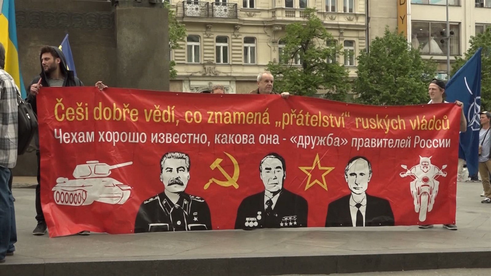 „Jsme přesvědčení, že tento motocyklový gang není běžný, ale je dotovaný ruským státem. Je používán k ruské propagandě, k ruské hybridní válce a pod rouškou oslav vítězství v druhé světové válce propaguje ruskou imperiální politiku a ruské nároky na tu část Evropy, o které je Putin a Kreml přesvědčen, že patří do ruské sféry vlivu,“ řekl jeden z organizátorů Tomáš Peszyński ze skupiny Kaputin. Podle prvotních informací měli motorkáři Václavské náměstí objet, nicméně do 16 hodin tam nedorazili.