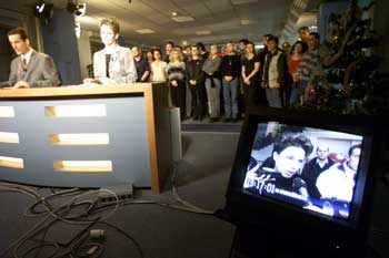 Pracovníci České televize vyrábě dvojí zpravodajství. (1. ledna 2001) |