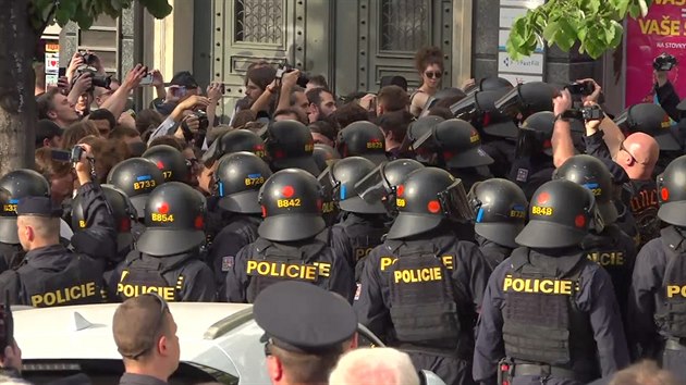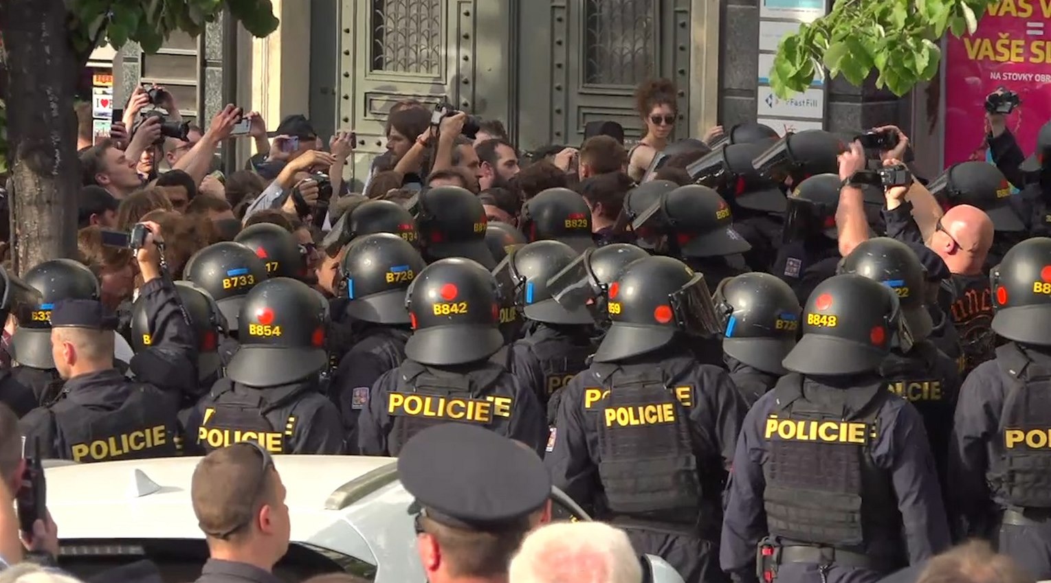 „V případě neuposlechnutí výzvy může být proti vám zakročeno za použití donucovacích prostředků,“ vyzývali několik minut policisté odpůrce SPD. „Policie konejte,“ skandovali příznivci SPD.