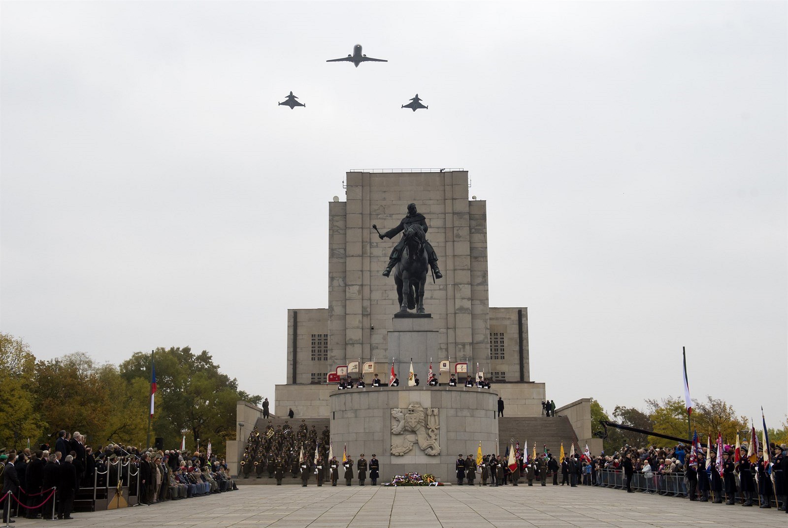Vrcholem ceremonie byl přelet dvou letounů JAS-39 Gripen v doprovodu dopravního letounu Challanger. Formace proletěla nad památníkem zhruba v 11:00, oproti jiným letům však neměla kouřovou trikoloru.