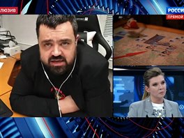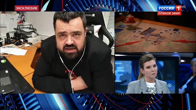 Jednoho z dalších moderátorů označil za zfetovaného. „To, co vyprávíte v Rusku v televizi, je naprosto absurdní ohýbání historie. My se tady tomu normálně smějeme. Nic proti Rusku nemáme, ale váš názor tu nikoho nezajímá,“ dodal.